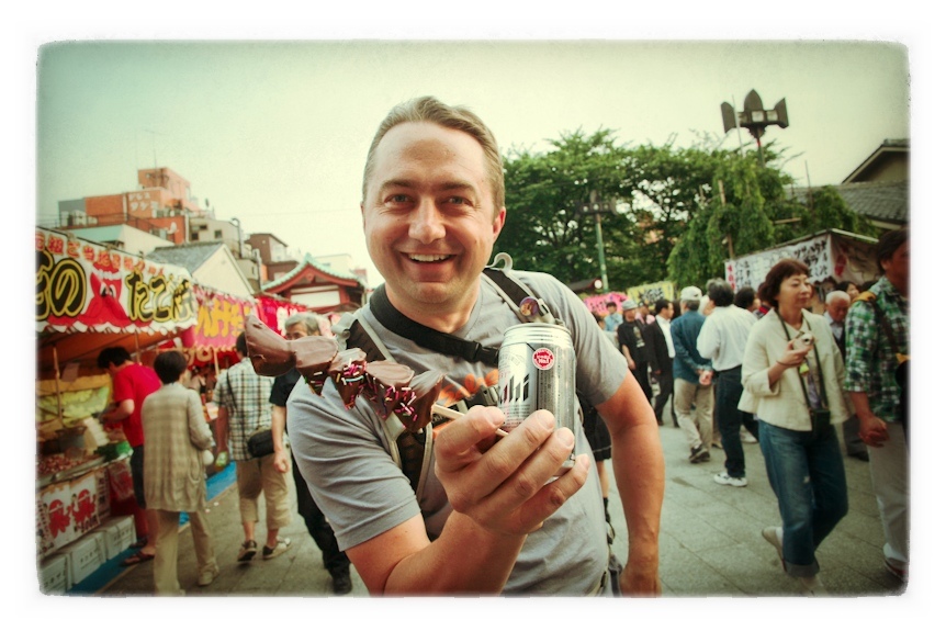 My friend and coworker Kelly Mac sent this image to me this week. It made me smile. It was taken in the final hours of the Salsa Japan Tour 2012 while out walking in Tokyo. That’s a chocolate covered banana on a stick! Oh….and a cold Asahi. I loved every minute in Japan.