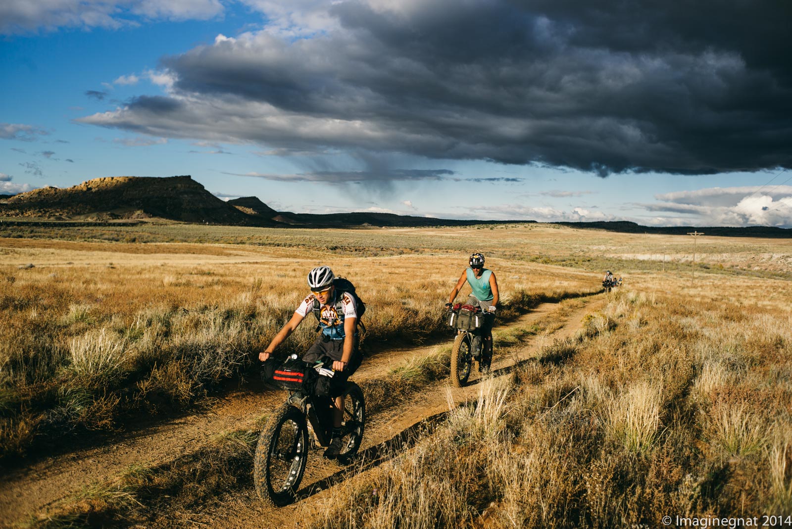 Well…..Here is what happened. Rain. Bad weather. Mud. 12 hours of cold rain holing us all up in tents or bivys. Hike a bikes. Shorter distances than planned. Lots of photo stops. Incredible views. Not being able to eat my food (Me!). A killer day riding fat mountain bikes in Moab. A two day ATV only loop out of Moab. A shuttle back to Fruita.  Success. All in all we ended up with 6 straight days of riding instead of 7. All in all considering we had 10 people in our group, I think we did just awesome.