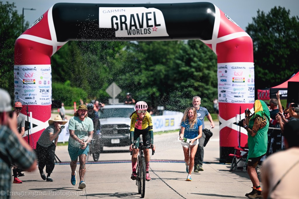 I also wanted to make a quick shout out to both the Women’s and Men’s 150mile Gravel Worlds Champions; Lauren Stephens and John Borstelmann. Wow, what performances on a really challenging day and course. I continue to be amazed at the modern day elite athlete performances regardless of sport. You both put in unbelievable efforts. I can also say that how you handled yourself also stood out. Lauren you are a class act and I really appreciate the DM regarding searching for and giving proper photo credit. John, I can’t recall ever seeing a race winner give me the smile and the energy you gave me when leaving the oasis. Again, both of you are class acts in my book.